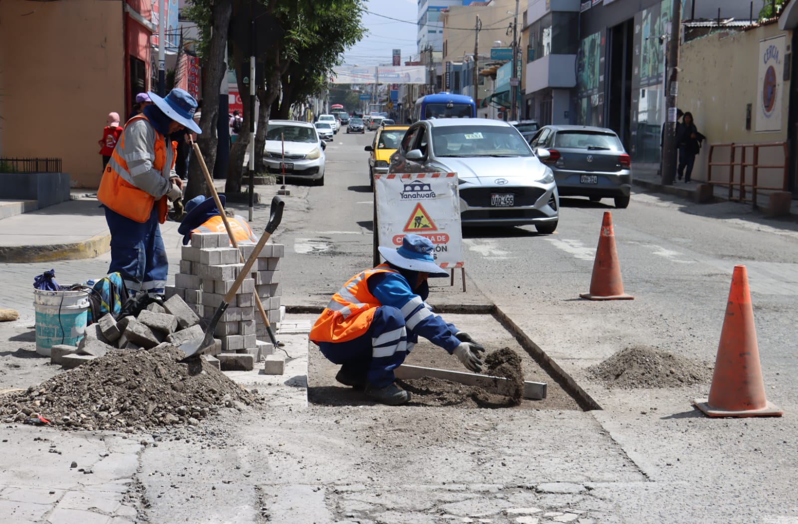 Las cuadrillas de obras de la Municipalidad Distrital de Yanahuara vienen intensificando el trabajo de mantenimiento y parchado de las calles y avenidas afectadas.